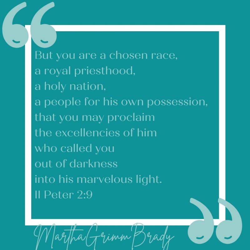 Do you ever feel worthless? If you are a child of God, He uses words like chosen royal, and holy to describe you. See what this promise has to say about his children. #chosen #holynation #belongtogod #liveinthelight